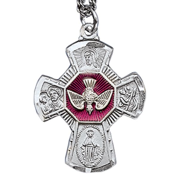 STERLING SILVER, FIVE-WAY MEDAL W/RED ENAMEL - SMALL