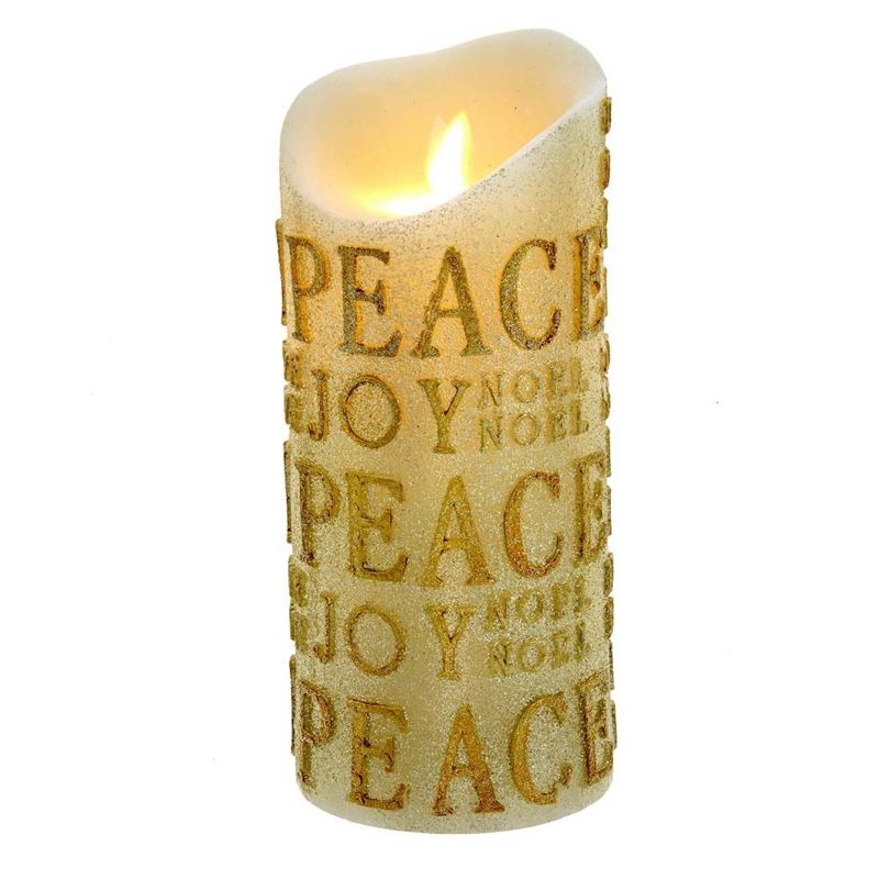 This gorgeous gold glitter candle is a flameless, safe option for your seasonal Christmas decor. Has a lovely, real-flame look with the flicker style wick!