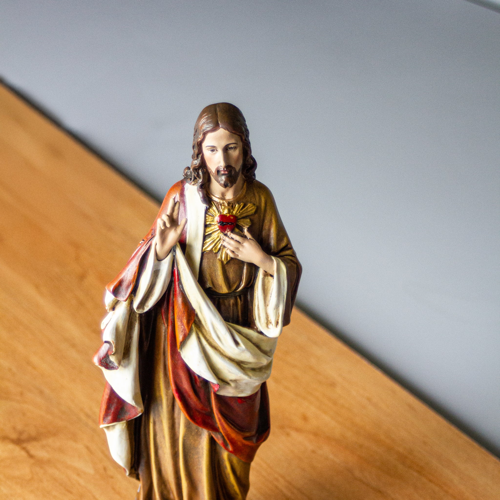 Behold the most holy Sacred Heart of Jesus! This gorgeous Catholic statue features our Lord in the classic stance with His hand raised in blessing and the other pointing to His divine heart filled with graces!