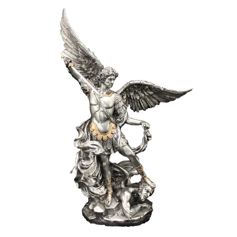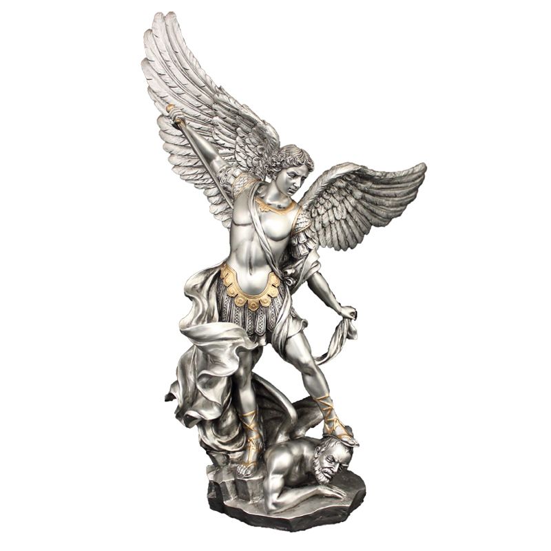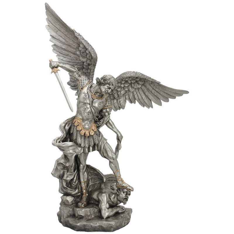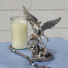Call on the powerful marshal of God's armies, Saint Michael the Archangel, with this handsome figure of him slaying the ancient enemy!