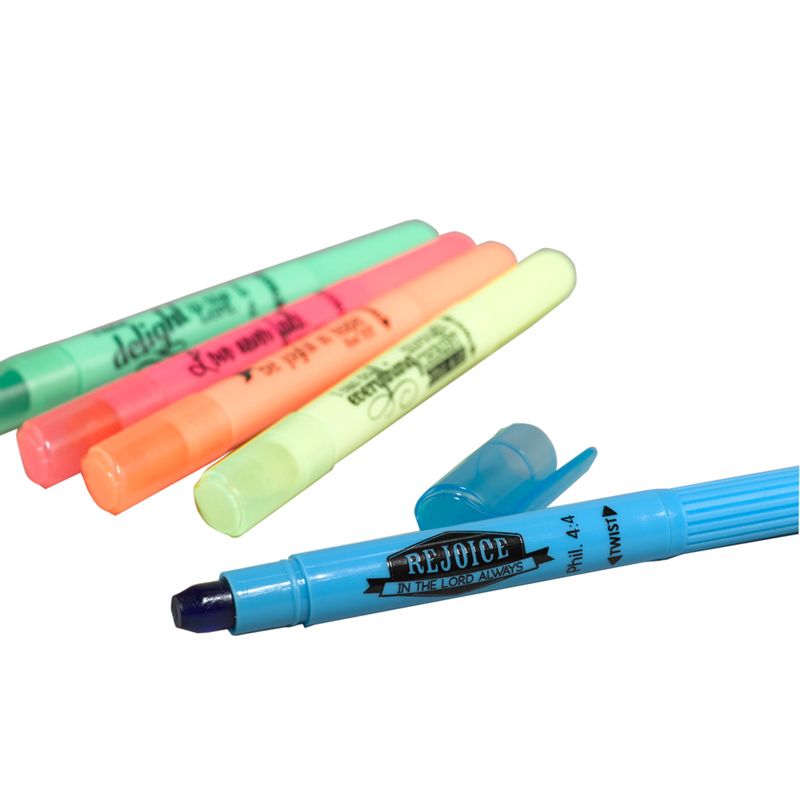 The Word of God has been given to us to learn, love and cherish! Mark your favorite verses with these highlighters designed specifically for thin Bible pages. Perfect for Bible study too and comes with five colors!