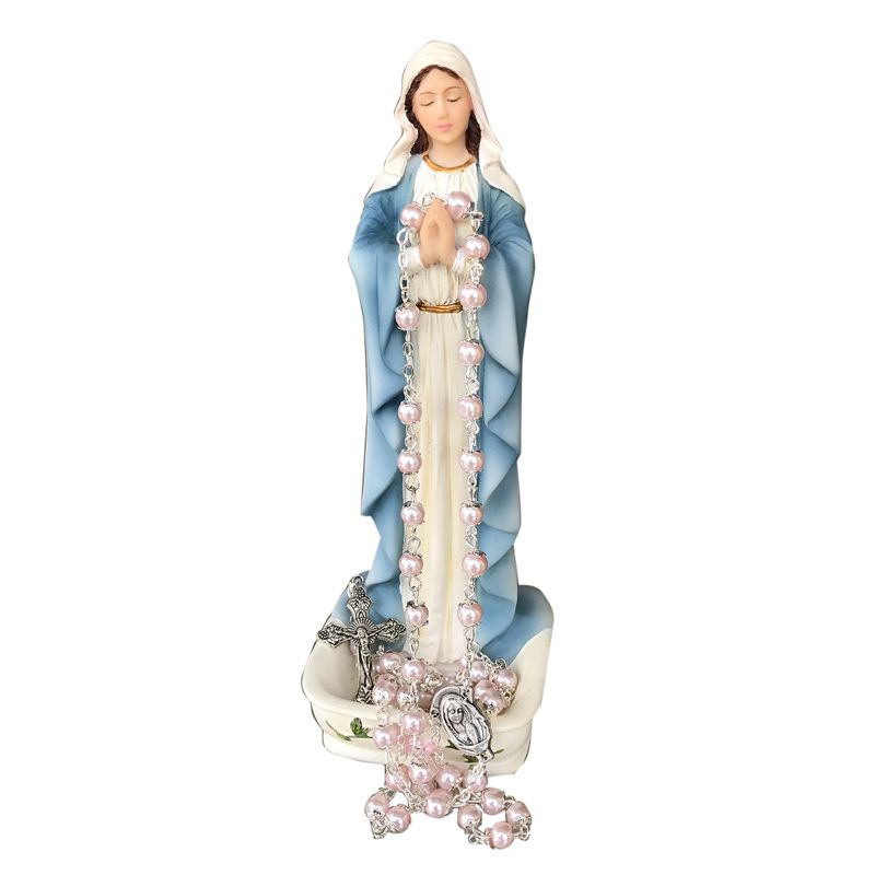 This humble image of the holy Virgin Mary serves as a small devotional statue, and a place to hold your favorite rosary or small keepsakes, earrings, rings and more.