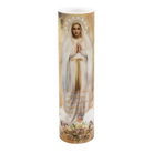 LED Flameless Devotional Prayer Candles are a safe option for burning extended hour flame candles in any environment for all ages. The flickering flame looks like authentic candlelight and the timer allows for 6 hours of light repeated every 24 hours. Candle is unscented and stays cool to the touch. Prayers are on the back in both English and Spanish.