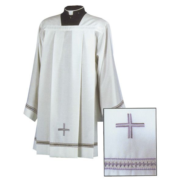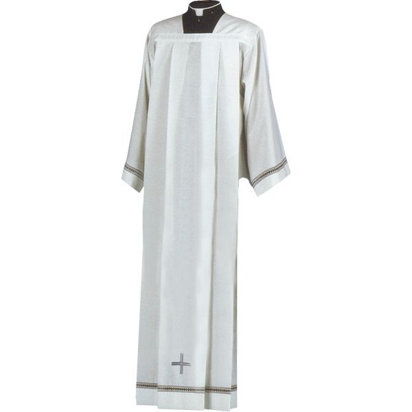 *The difference is: an alb goes to the ankles. A single panel means a single line under the cross. (See picture.) A double panel would be two lines under the cross.