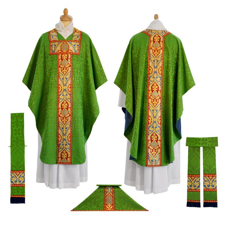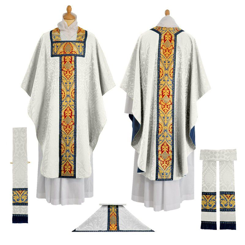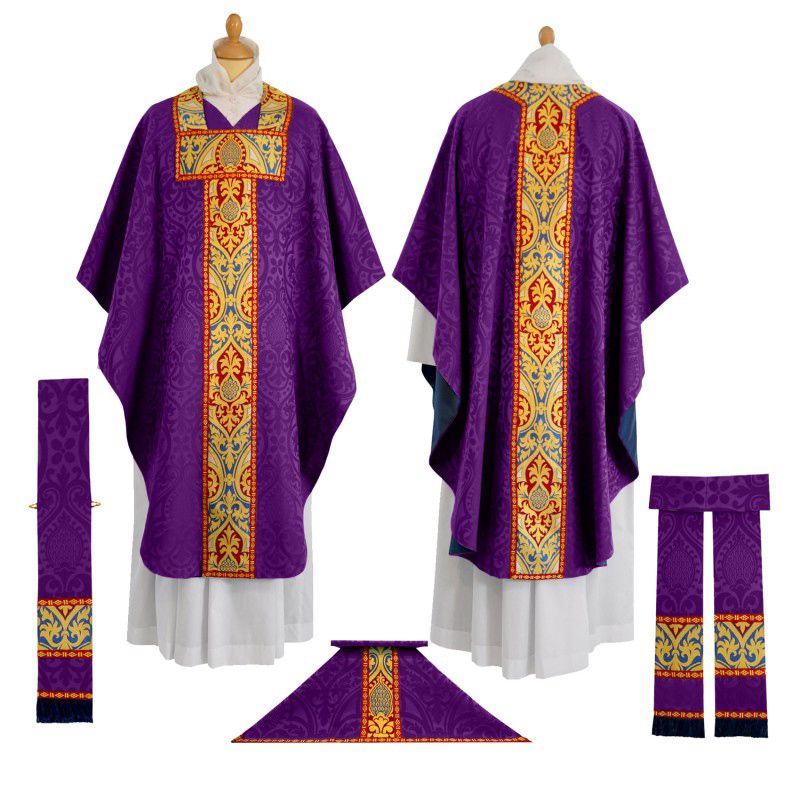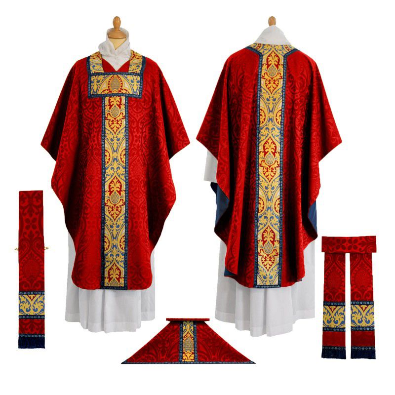 This set of liturgical supplies includes the maniple, burse and chalice veil for celebration of a Low Mass. Perfect for any parish or chapel.