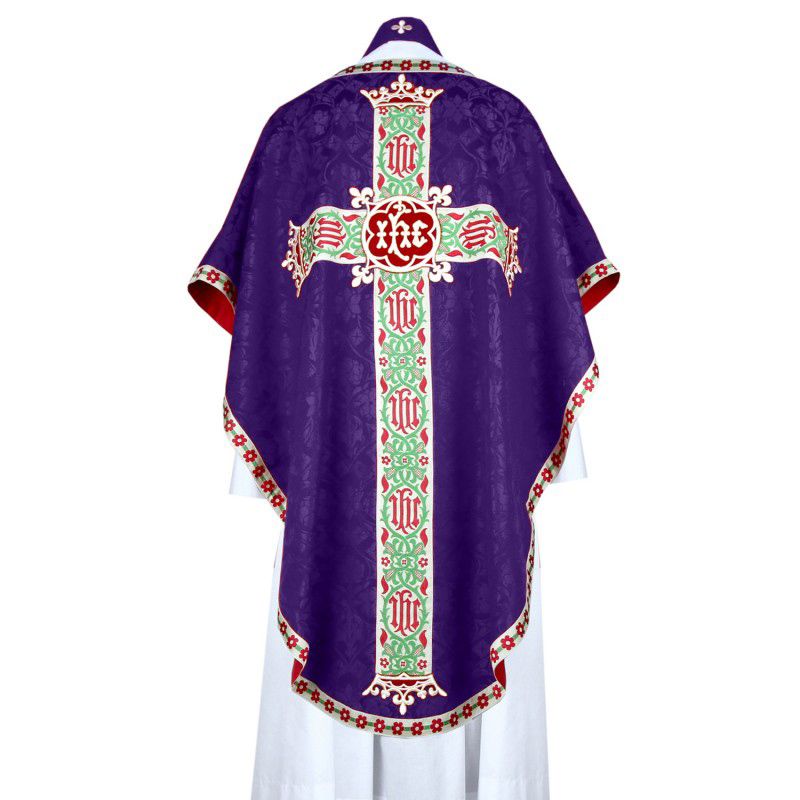 For the clergyman of distinction, this richly made set includes the chasuble and stole for celebrating the Holy Mass, and honors the Holy Name of Our Lord. Available in four liturgical colors, these quality vestments are perfect for any parish.