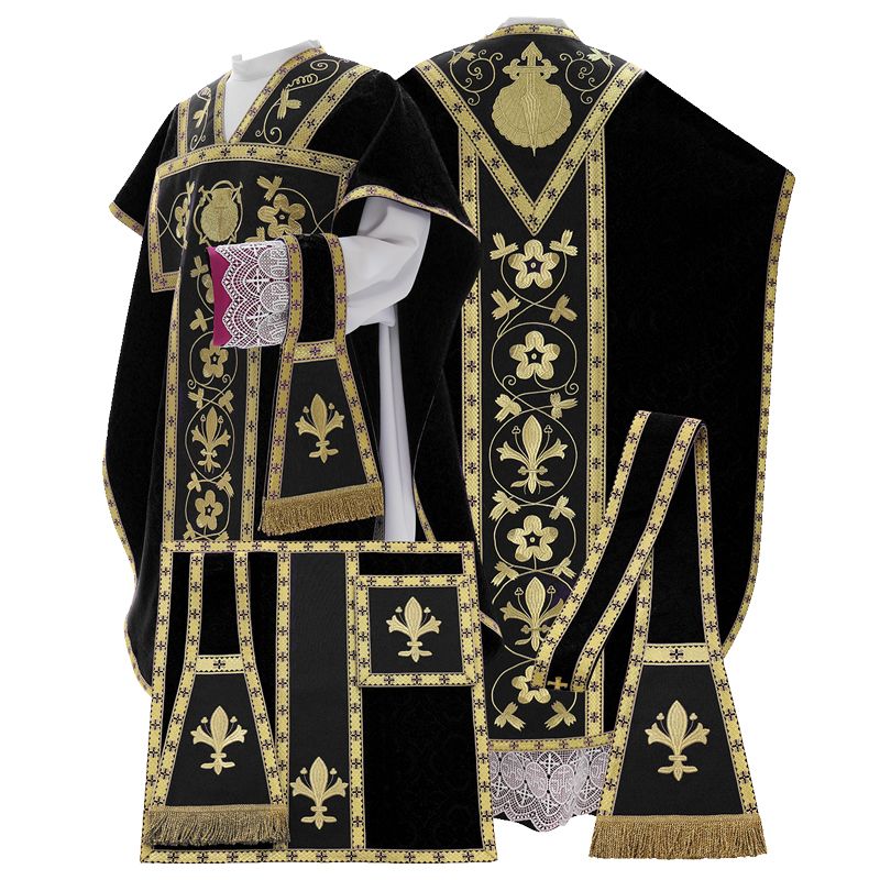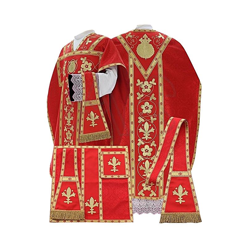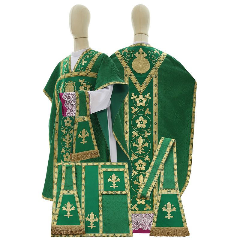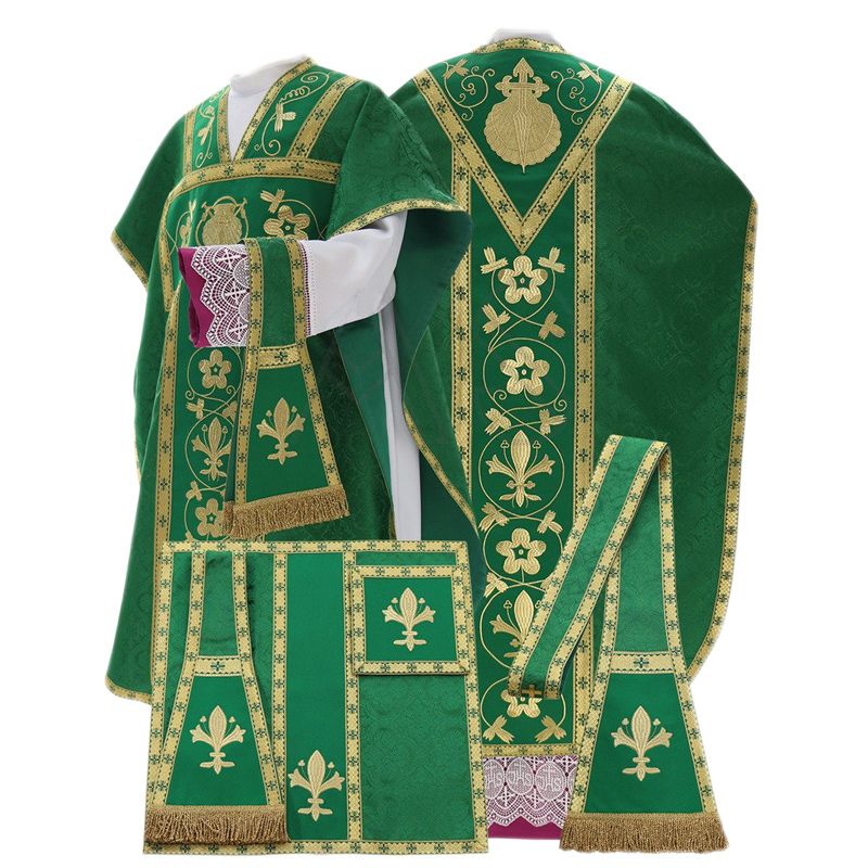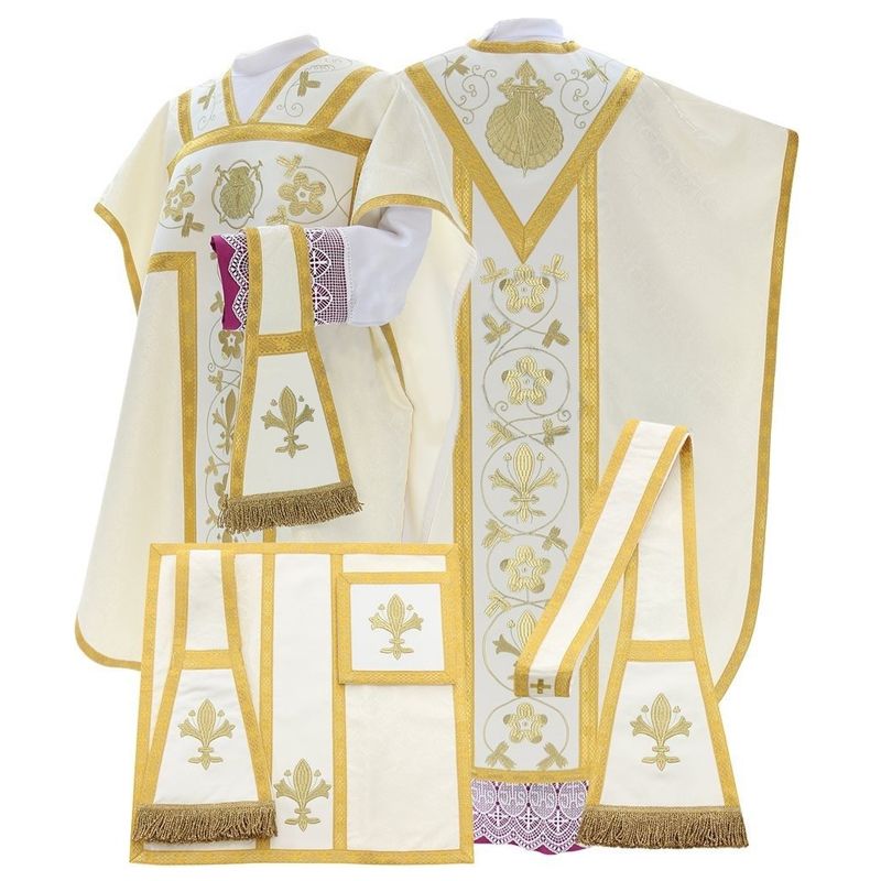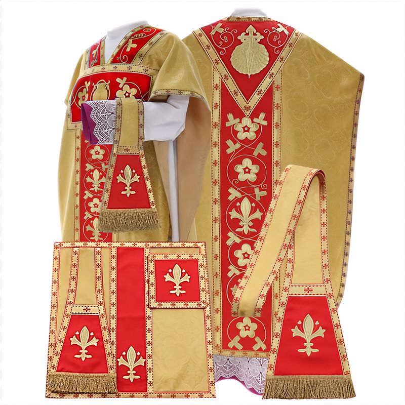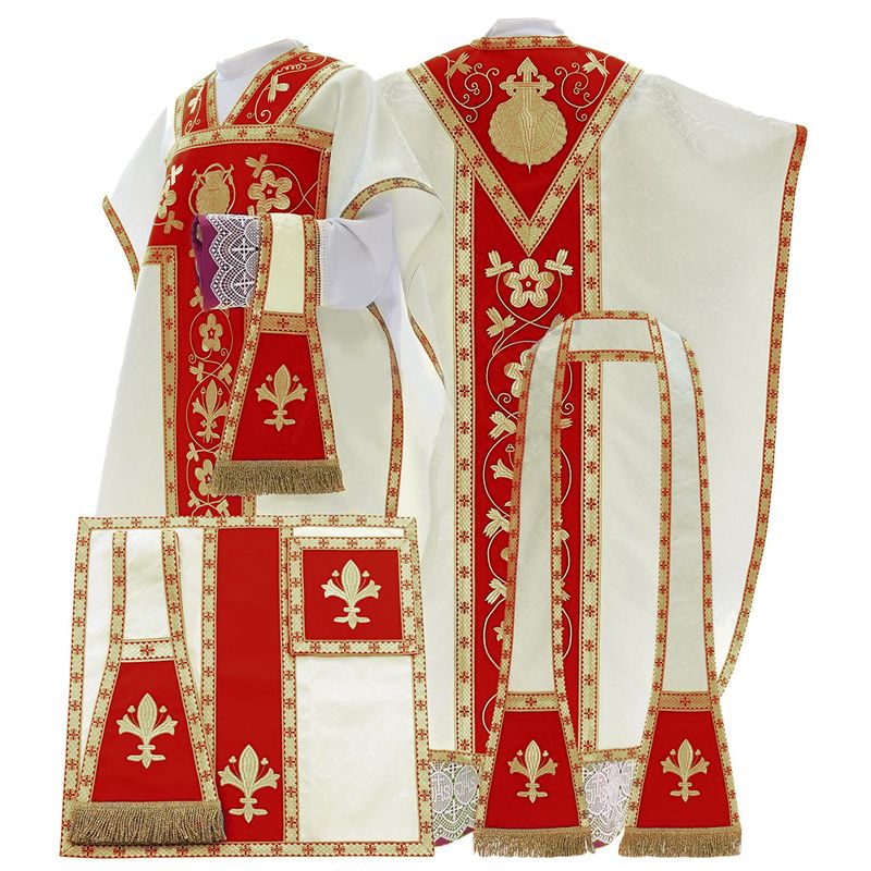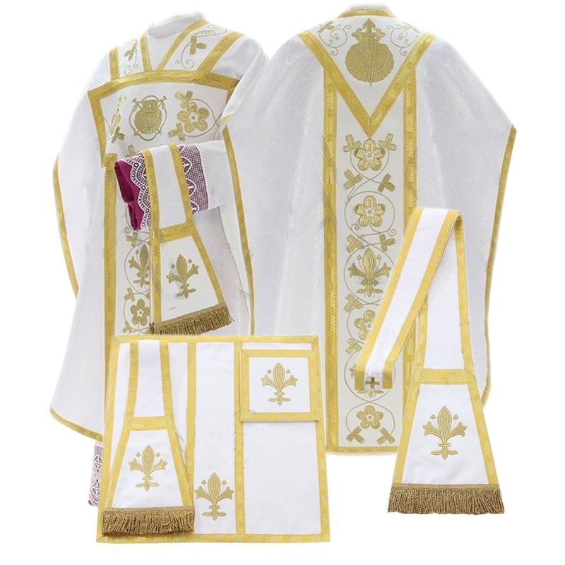 Chasuble, Stole, Maniple, Burse and Chalice Veil.