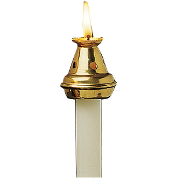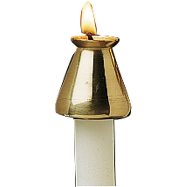 These polished brass candle followers, sold individually, are available in your choice of smooth plain surface of the bove style. Tapered for an elegance top and flame display, choose the size you need from the drop-down box above. Perfect for parishes, chapels or private home devotions, these brass accessories follow your candle down as it burns, minimizing dripping and clean up.