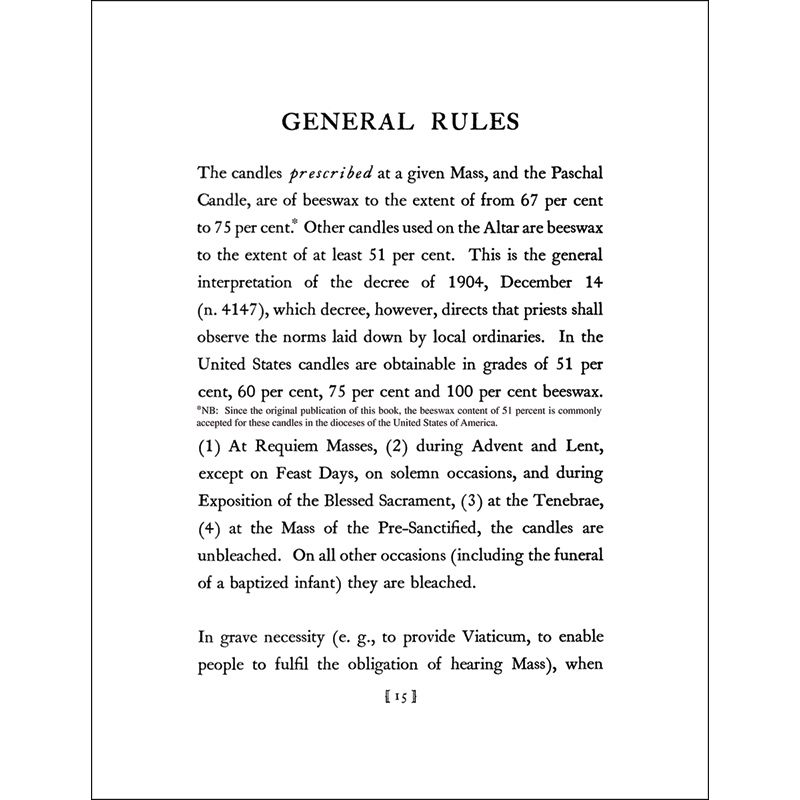 Educate yourself about the rules and practices concerning candles in the Roman Rite through chapters that cover Masses offered by a priest or bishop, a sick call, the Divine Office and even when administering the other Sacraments or for other solemn occasions.