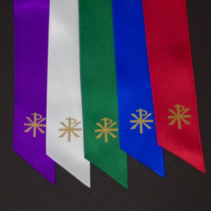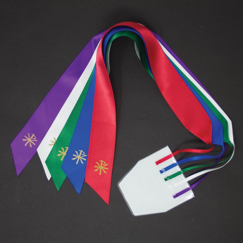 Navigate quickly to the last page you read on your bible or other important Catholic book or on those profound passages you've come across while reading the scriptures with this very handy, multi-colored bookmark ribbons. This set has 5 ribbons attached to a tab that is inserted into the spine of the book. The colors are red, blue, green, white, and purple.