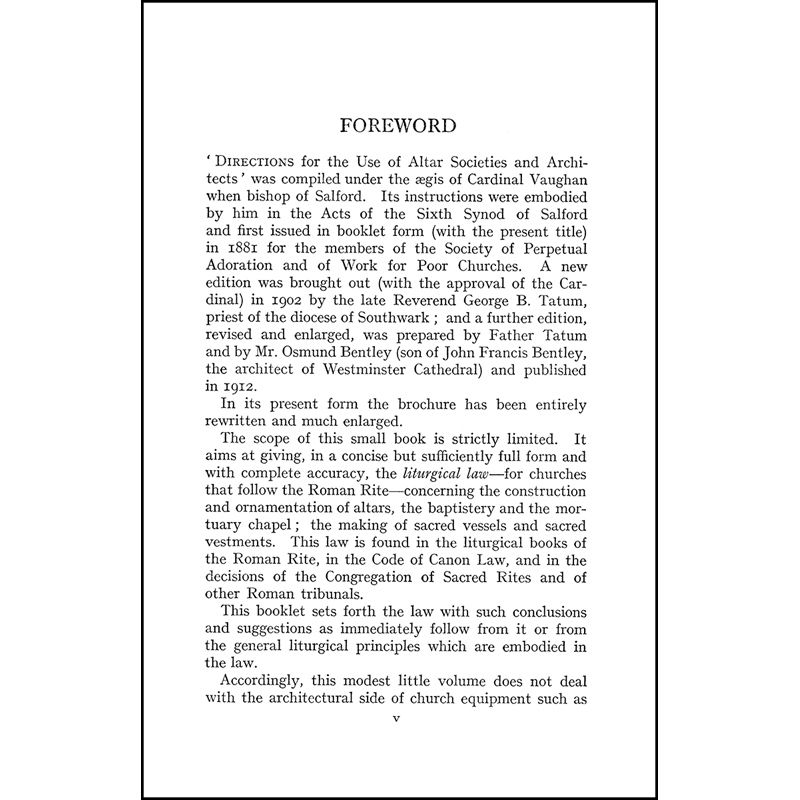 DIRECTIONS FOR THE USE OF ALTAR SOCIETIES AND ARCHITECTS