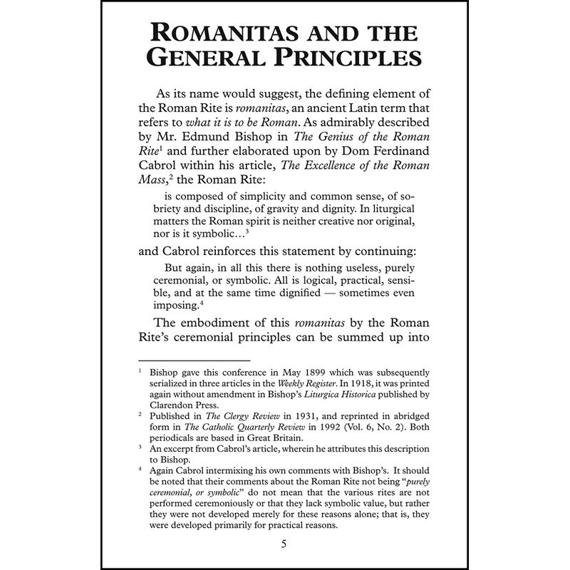 Learn the liturgical rules of the road! This invaluable manual systematically outlines the general principles of the Roman Rite as they apply to the altar servers (inferior ministers). It is also a helpful guide for any Catholic who wishes to better understand the ceremonial actions.