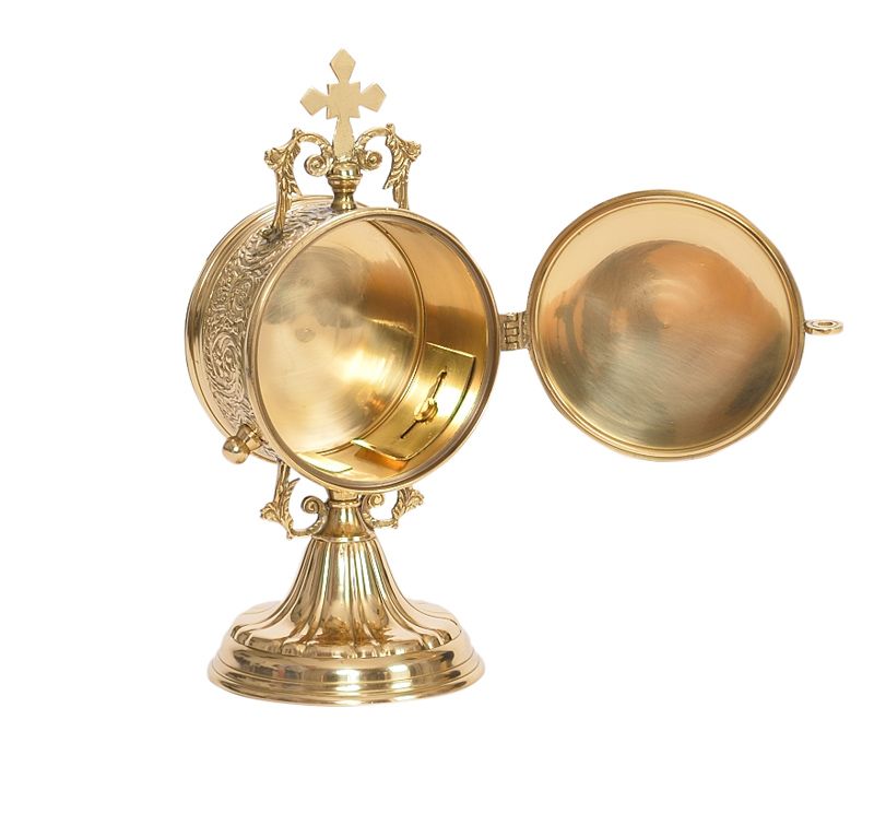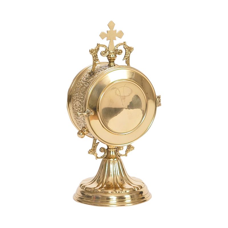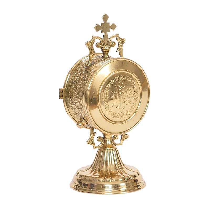 This elegant vessel serves as a reverent place to store the luna when not being displayed for veneration. This has a protective closure, is a worthy place for the Lord Jesus to repose.