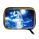 Vinyl cover with image of Mary on both sides, Secure zipper.