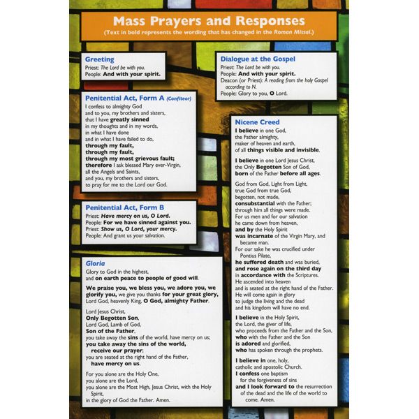 The bold text on these cards represents the wording that was changed in the 3rd edition of the Roman Missal that was promulgated in 2011.