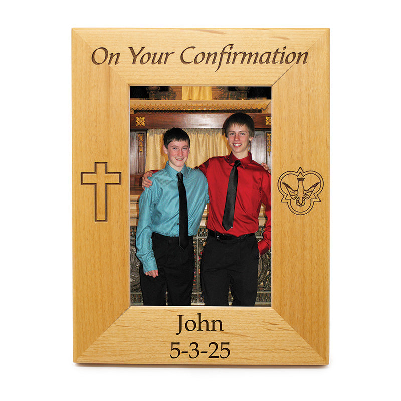 Simple yet elegant, the holy Cross of our Faith and the Dove representing the Holy Spirit Reads: On Your Confirmation.