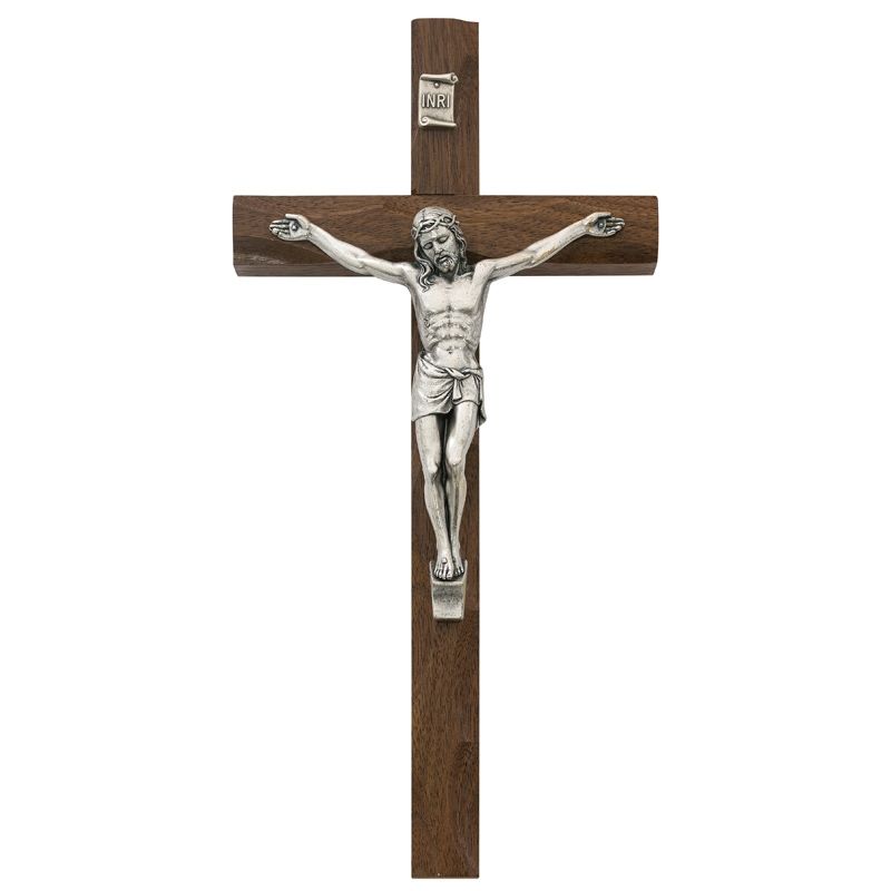 The Crucifix displays the core, fundamental truth of Catholicism. Our Lord, Jesus Christ, suffered and died for us. Every Catholic home needs a beautiful crucifix. Traditionally, crucifixes are placed above doorframes and beds in homes. In places of worship or home altars, they should be more prominently displayed. Missing a wall crucifix in your sacristy or home altar? Browse our collection of expertly crafted, beautifully painted crosses and crucifixes. Our crucifixes come in many different sizes (ranging from 4" to 38"), styles, and materials (including resin, wood, plaster and metal).