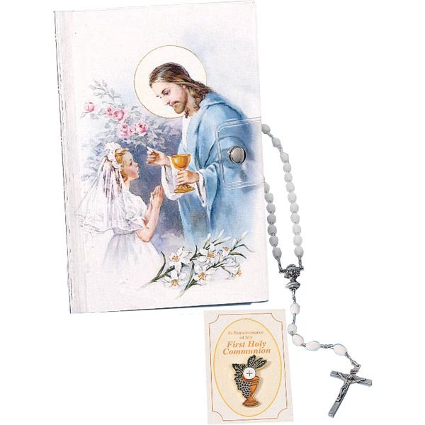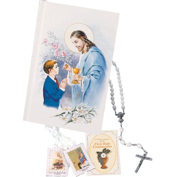 Includes: Scapular, Pin, Mass book in vinyl case and Rosary. Contains updated changes for the Roman Missal 3rd edition, Life of Christ with illustrations, Daily Prayers and a remembrance page. A beautiful keepsake for that special sacramental day!
