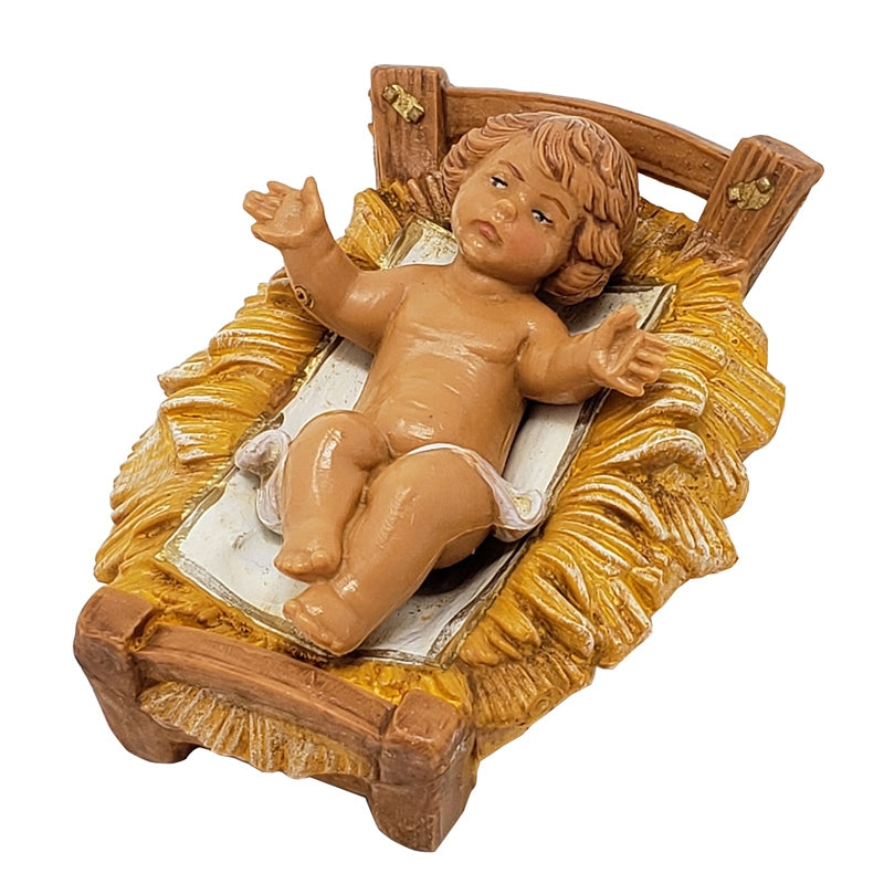 Jesus was born in a manger with animals around after His maternal mother, Mary, was accompanied by her husband, Joseph, from a long journey to Bethlehem for the census as ordered by the King only to humbly stay in a stable apart from crowded inns for shelter. In this figure, the infant Jesus is captured as if welcoming His humble birth place, wearing white dress, expressing a radiantly happy and blessed face. Introduced in 1994, Baby Jesus is a part of the Fontanini Heirloom Collection. Complete the Holy Family on your collection of Fontanini figures with the fruit of love and faith, the child sent from above to be our Savior, our King.
