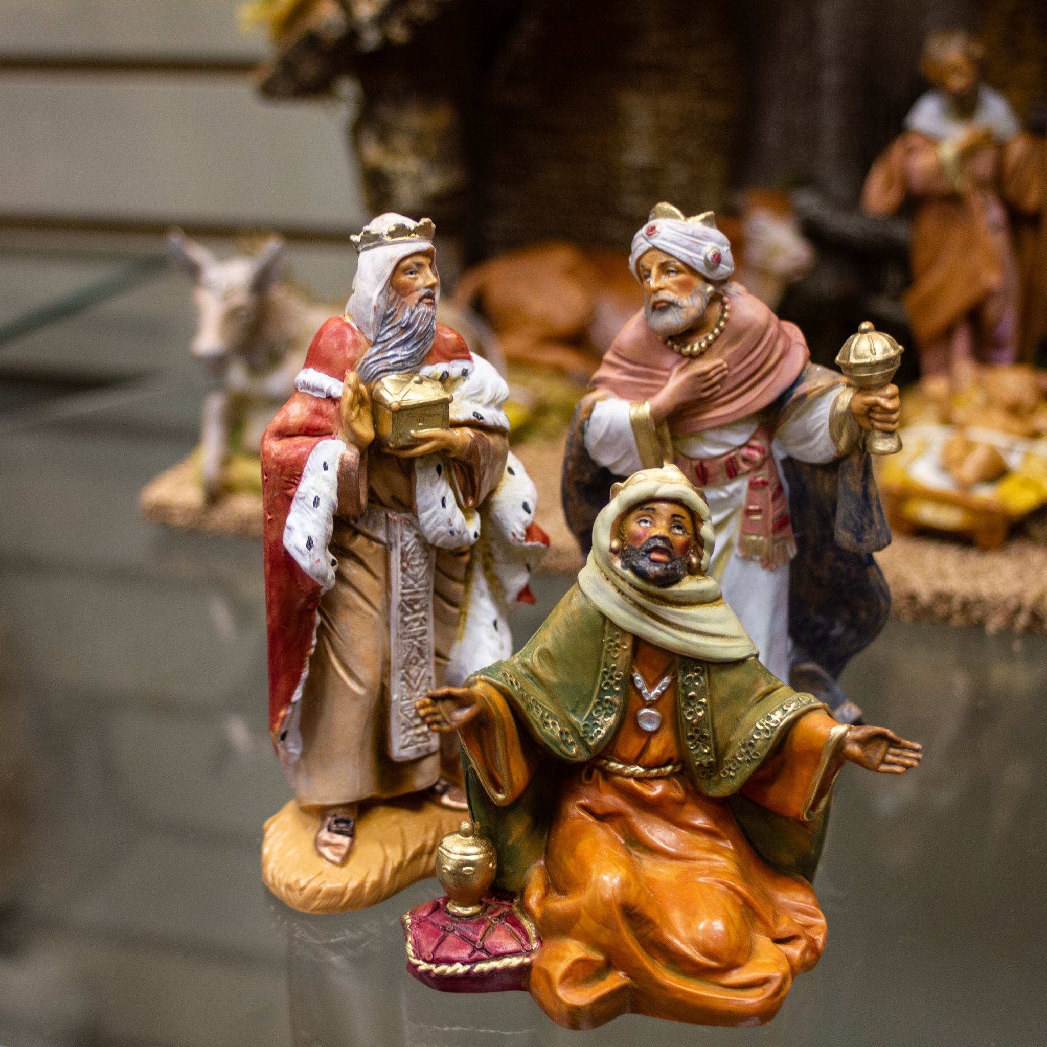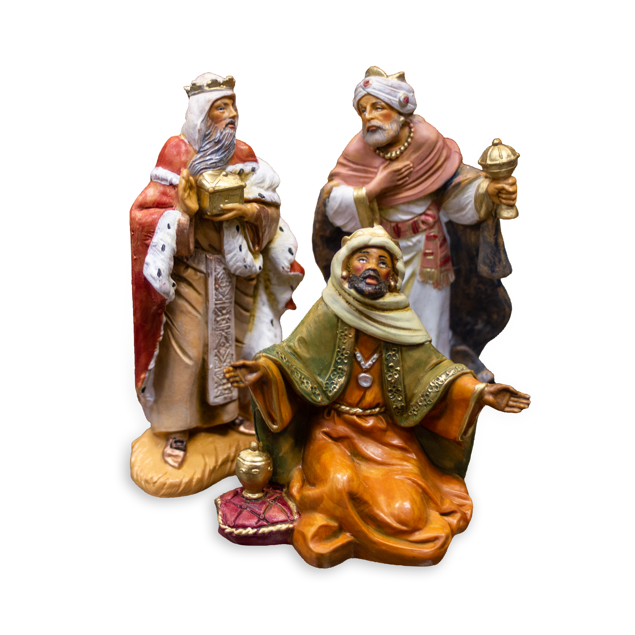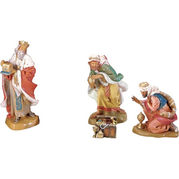 The Three Kings were told by King Herod to find exactly where in Bethlehem the new born King, Jesus, was so he could worship Him. By the command, the Magi traveled following a very strange star up in the sky and found the infant Jesus in the manger. Their reactions upon seeing the Son of God are skillfully illustrated in each of these handsomely crafted and hand-painted Fontanini nativity figures. Include them in your 7.5 or 5 inch Fontanini nativity set today.