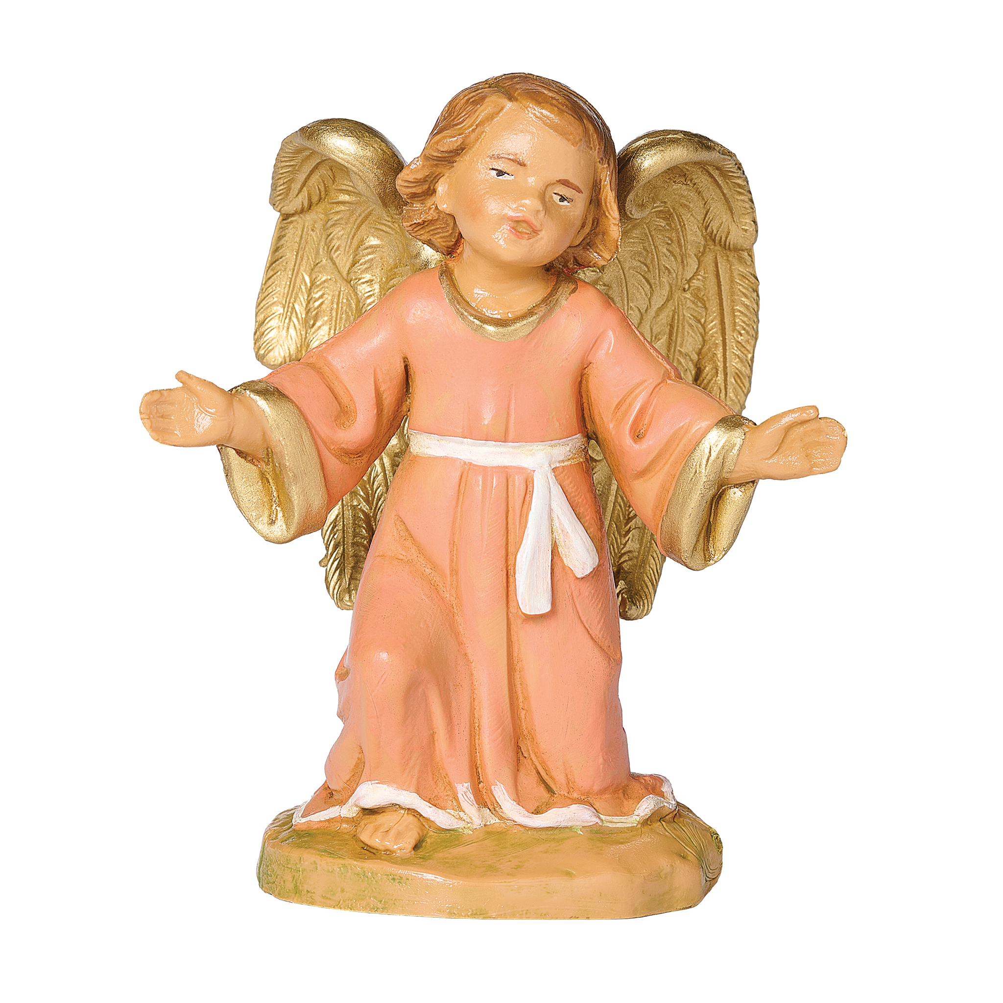 Beautiful figure of a Guardian Angel, kneeling with arms spread open. Golden wings and peach colored tunic/robe.
