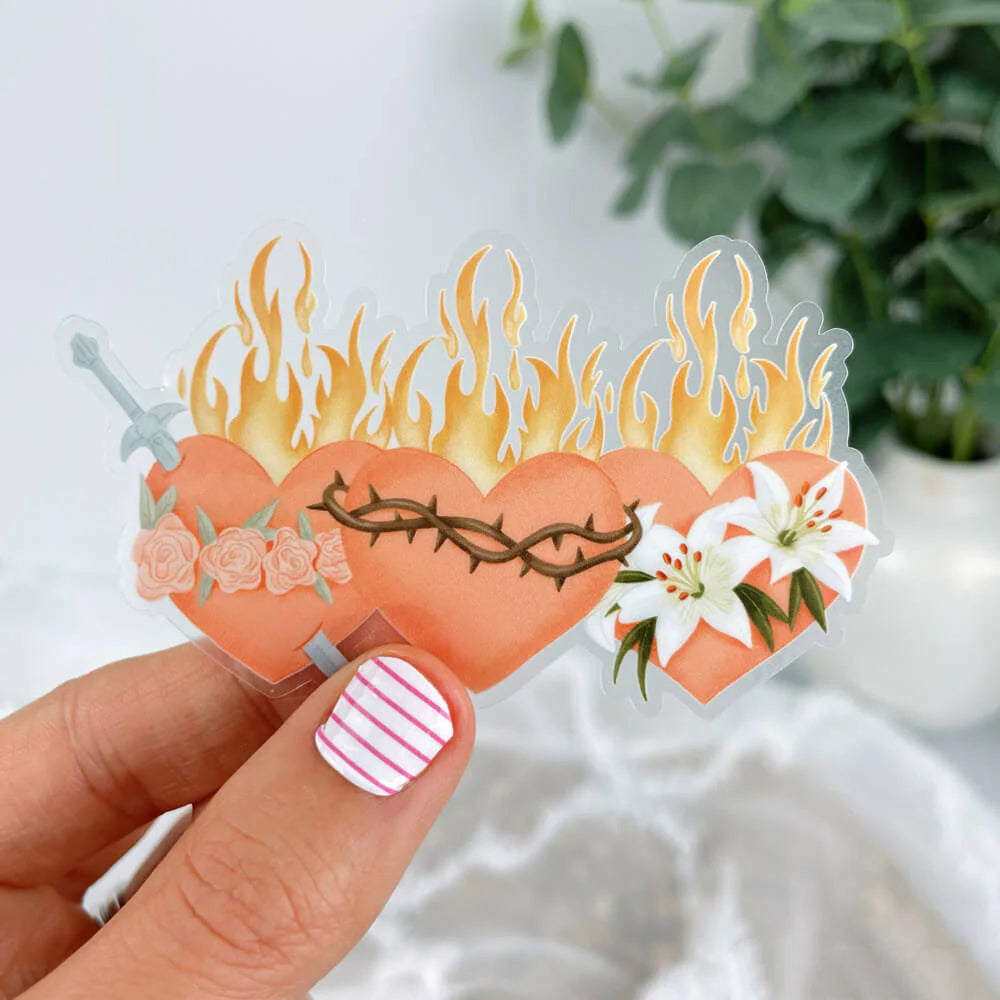 Display this Holy Family sticker on your water bottle, laptop, phone, or notebook and be reminded of the profound love and protection of the Sacred Heart of Jesus, Immaculate Heart of Mary, and Most Chaste Heart of St. Joseph.