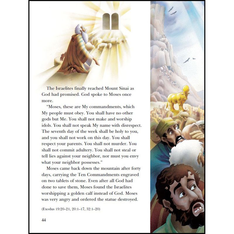 In this richly illustrated Catholic bible for young readers, they'll discover the classic stories of Scripture in which God directed the course of history and the lives of His people. From the story of Creation, Noah's Ark, Joseph and his Brothers, King David and Daniel. Leading into the New Testament with the Birth of Jesus, Wedding at Cana, Sermon on the Mount, The Good Samaritan, the Passion and Resurrection. And many more! Also concludes with a section of traditional prayers, including Our Father, Apostle's Creed, Three Acts of Faith, Morning Offering, Grace Before Meals and others.