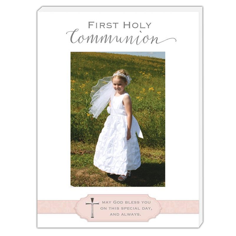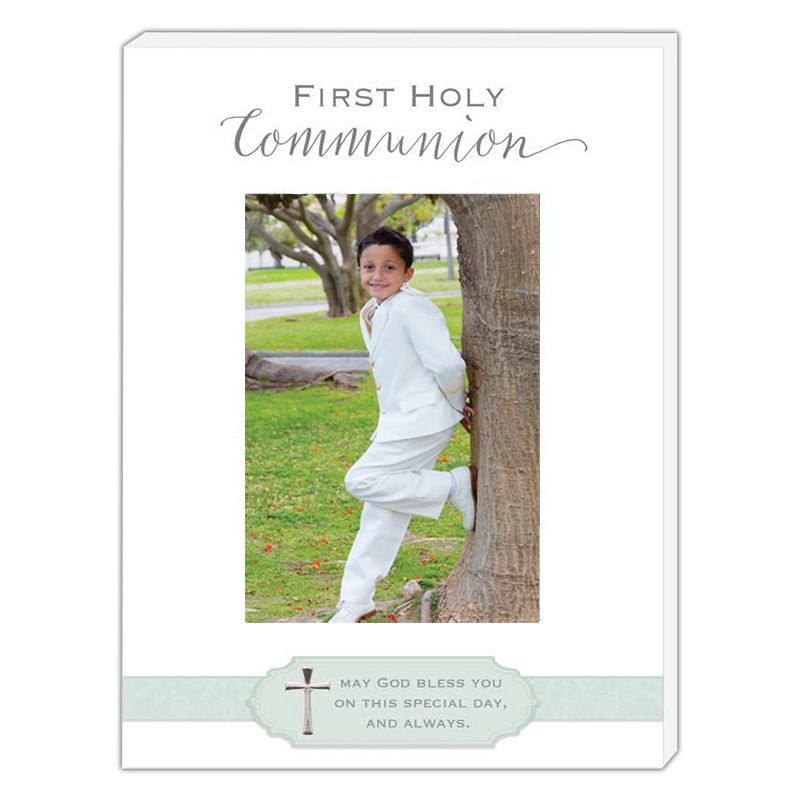 Keep your most treasured photo from that holy day of First Eucharist in this attractive frame with inspirational verse and the cross of our Christian faith at the bottom.