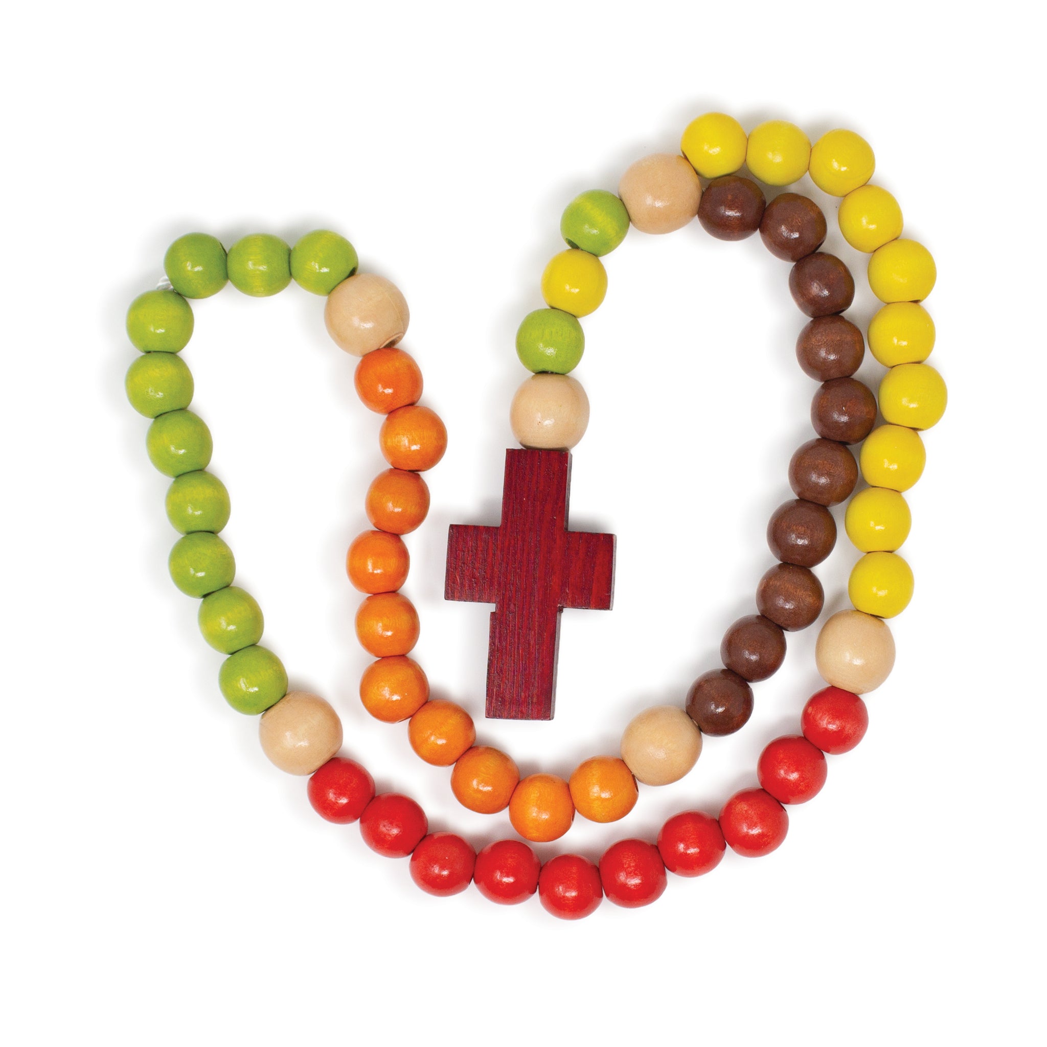 A longtime customer favorite! This brightly colored wooden rosary is designed just for little hands, with chunky, easy-to-grip beads strung on a durable cord. Made with child-safe, non-toxic paint, it’s a fun and faith-filled way to introduce children to the rosary and help them learn to pray.