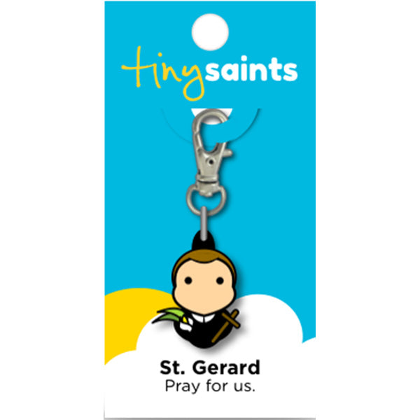 ST GERARD TINY SAINT CHARM Collect and exchange these little reminders of our church heroes. Like this one of St. Gerard Majella! Clip to backpack, keychain, purse or anything you can think of. Biography of saint included. Measures 1" and made of soft PVC with lobster clasp.