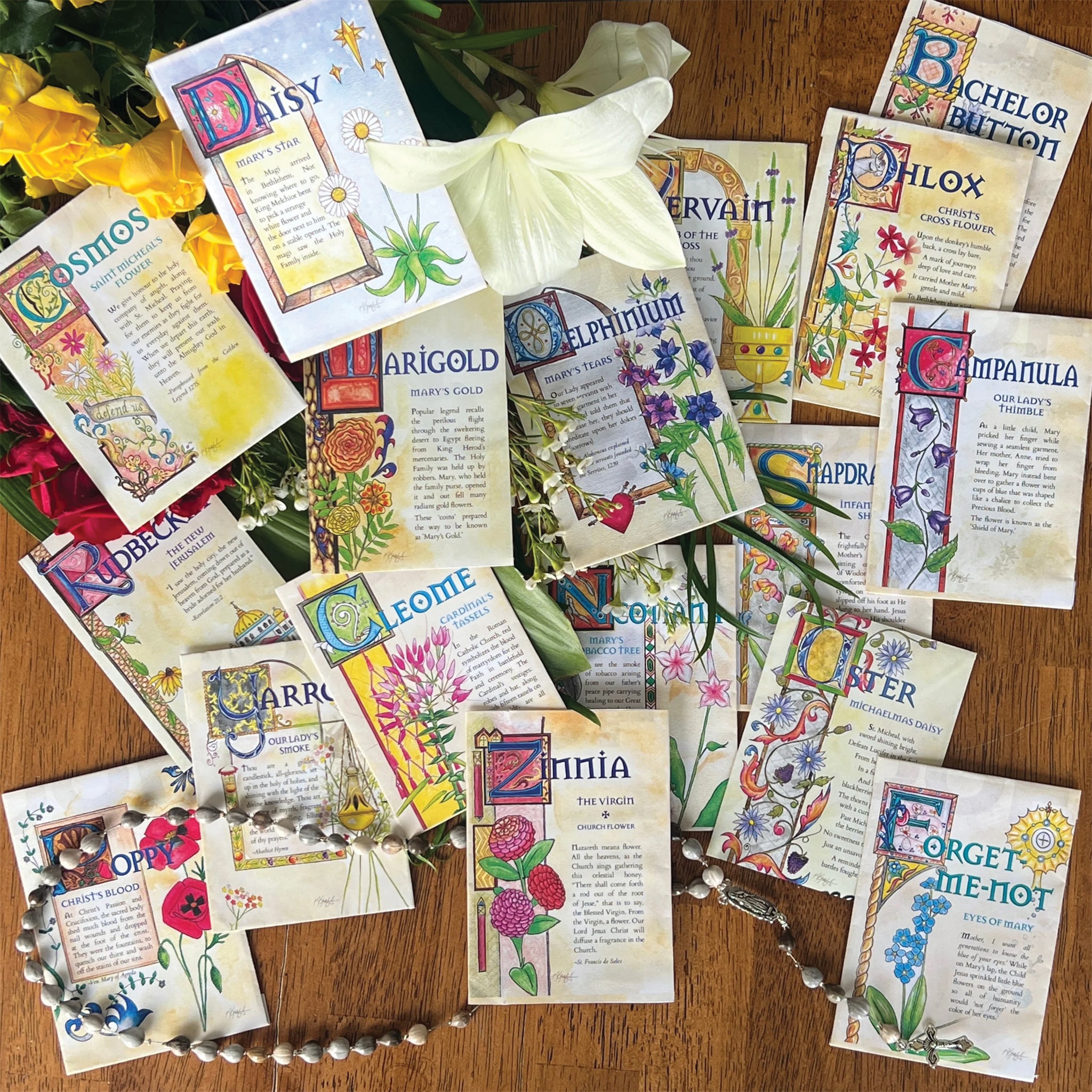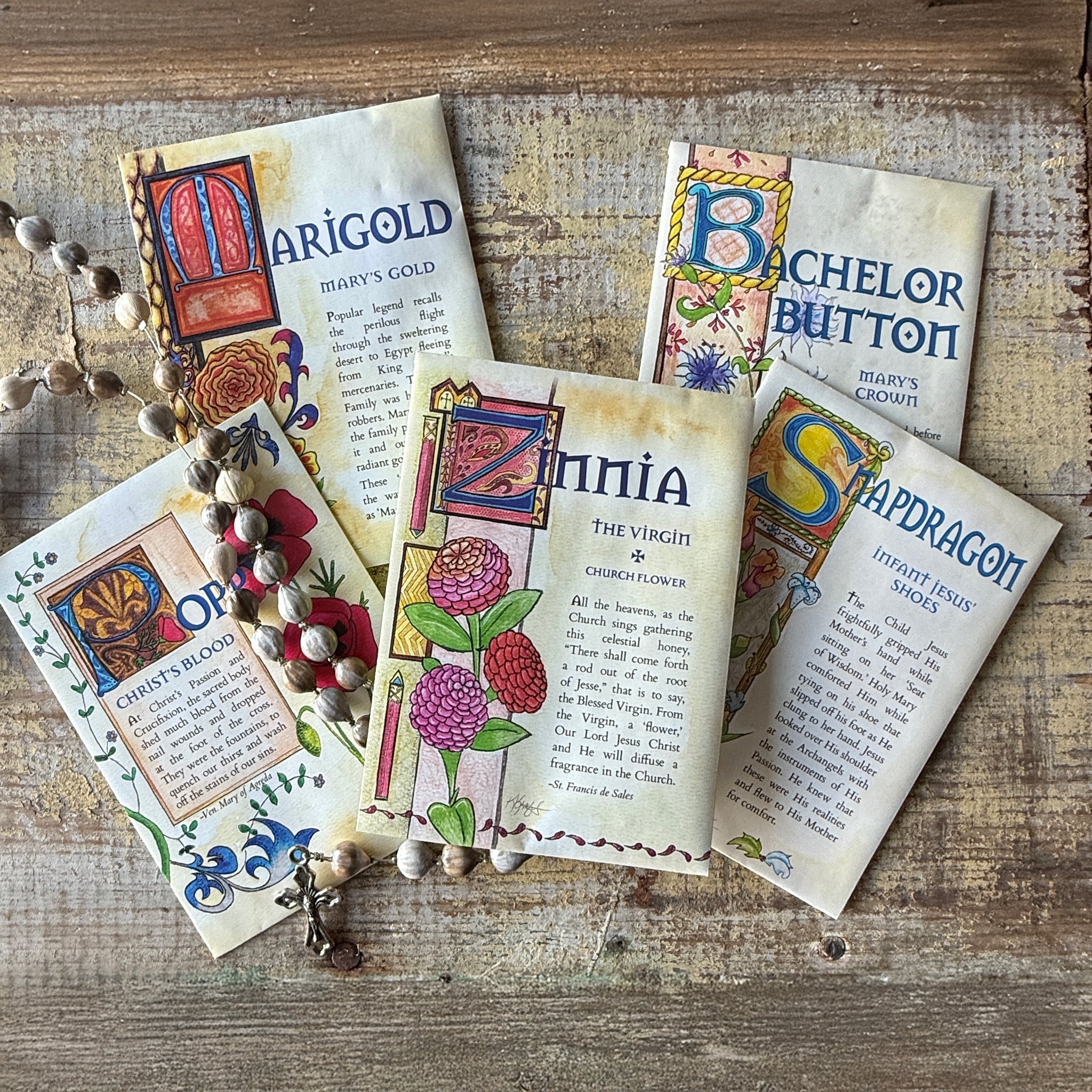 Whether you're just discovering this beautiful tradition or looking to expand your sacred space, you've come to the right place! We have everything you need to plan, plant, and grow your very own Mary Garden, from seed packets and plant stakes to garden statues, faith-based books, Marian floral liturgical calendars, and more. Start your journey with us and let us help you cultivate a space of beauty, prayer, and devotion to Our Lady.