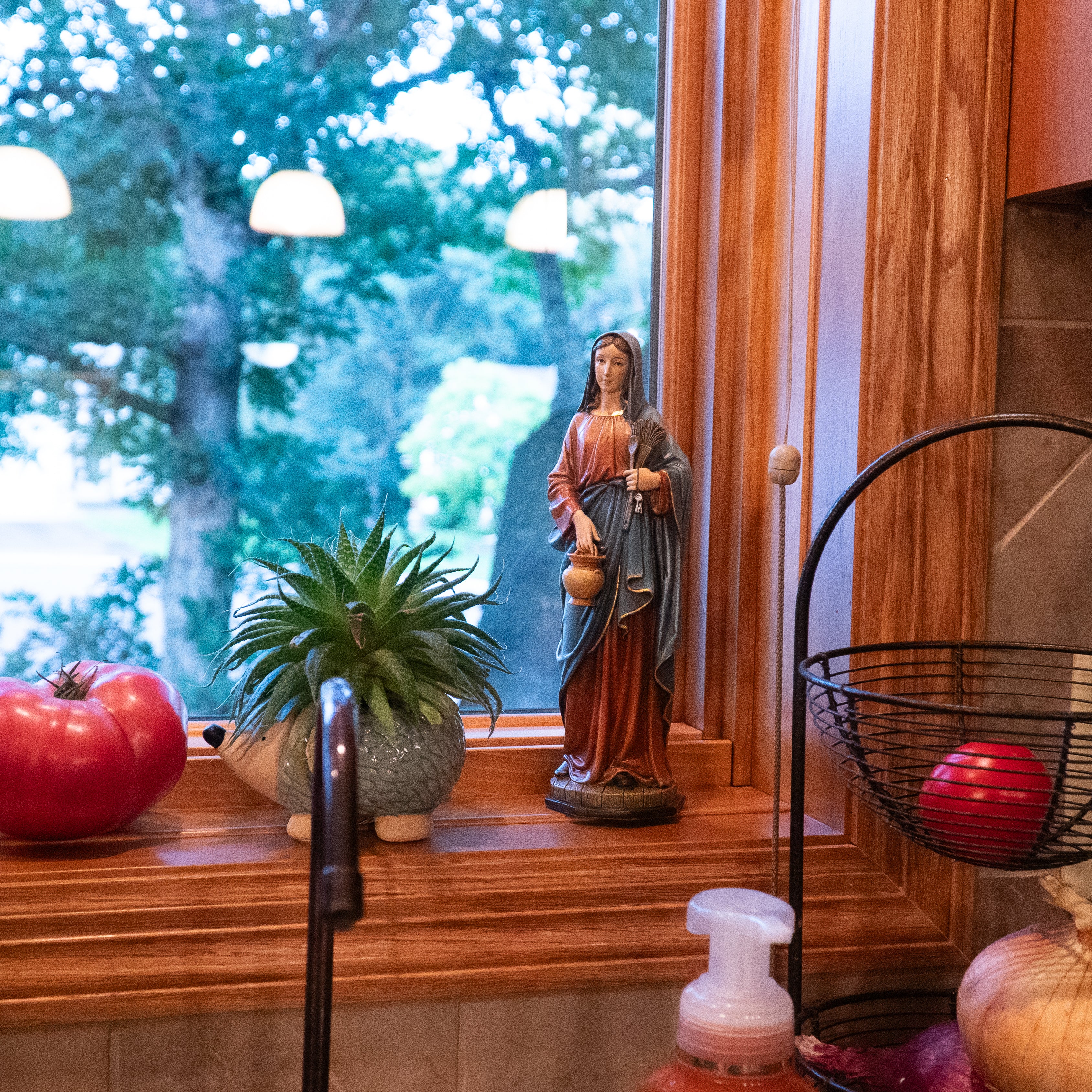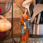 Whether the Virgin Mary was cleaning the home of the Holy Family, or reflecting on God's will for her, or interceding for the members of the Church, our Blessed Mother was always open and willing to help anyone who came to her. This Catholic statue features Mary as the Kitchen Madonna, holding a wooden spoon, a broom, jug, and a small ring of keys. Make Mary the Lady of your home and hearth.
