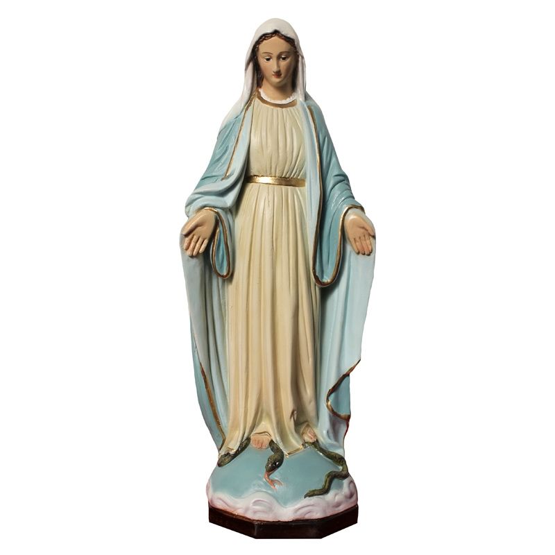 This lovely statue of the Blessed Virgin Mary shows her with hands open to receive the prayers of the faithful as well as dispense the heavenly graces of God and the merits of Jesus. For St. Louis de Montfort teaches that we should go to Jesus through Mary, for it was through her that He came to us! Choose from 8" or 12" sizes. Made of plaster.