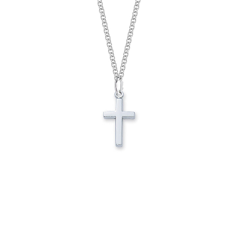 This plain cross is a subtle way to wear your faith daily, keeping the Passion of the Lord close to you at all times. Made of fine sterling silver on a 16" stainless steel chain with clasp.