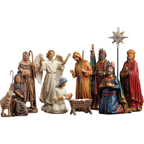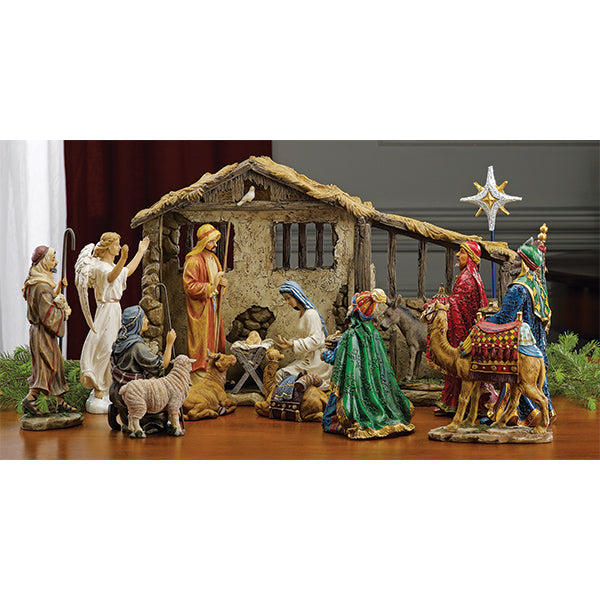 This sturdy Nativity stable has a classic look, very much like traditional Christmas cards showing the stable of Bethlehem where Christ was born! A perfect way to showcase your 10" scale Nativity figures and light them in the evening!