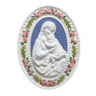 Divine Son, Our Lord Jesus Christ, framed by a garland of roses. Crafted in serene tones of white and blue, it evokes the elegance of a classic cameo, making it a timeless piece of devotion and beauty. Perfect for any space, it serves as a gentle reminder of faith, love, and the grace of Our Lady and her Son.