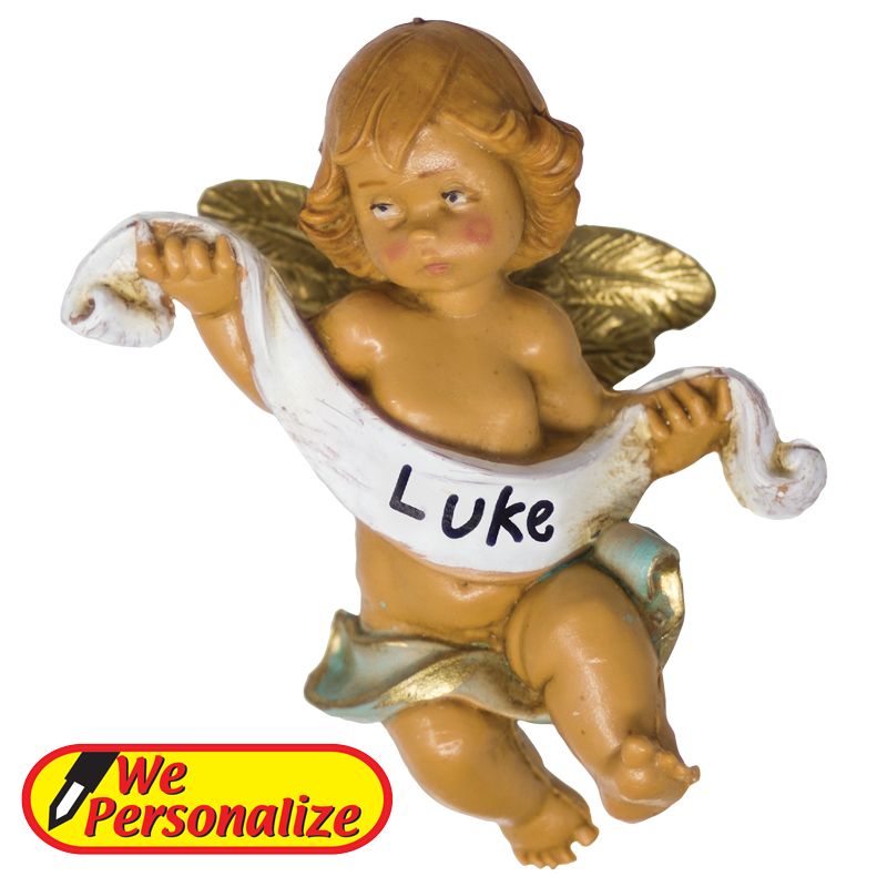 This classic cherub angel bears a scroll that you can personalize with anything you'd like, whether a name, date, or greeting! Makes a great Christmas gift and has been a popular seller for many years, a real Fontanini treasure!