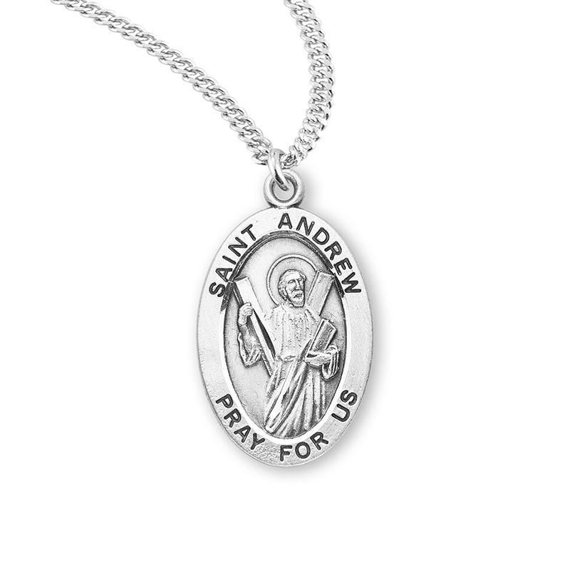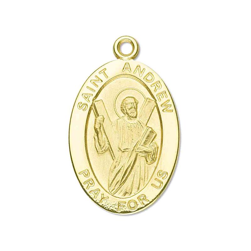 St. Andrew is called the first Apostle and is patron of anglers and fisherman, happy marriages, and sailors. He was martyred for the faith on an X shaped cross. Reads, Saint Andrew Pray For Us around the outside edge.