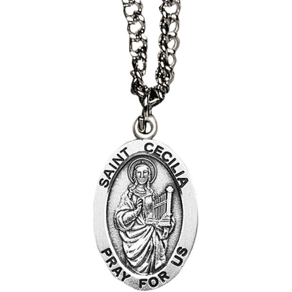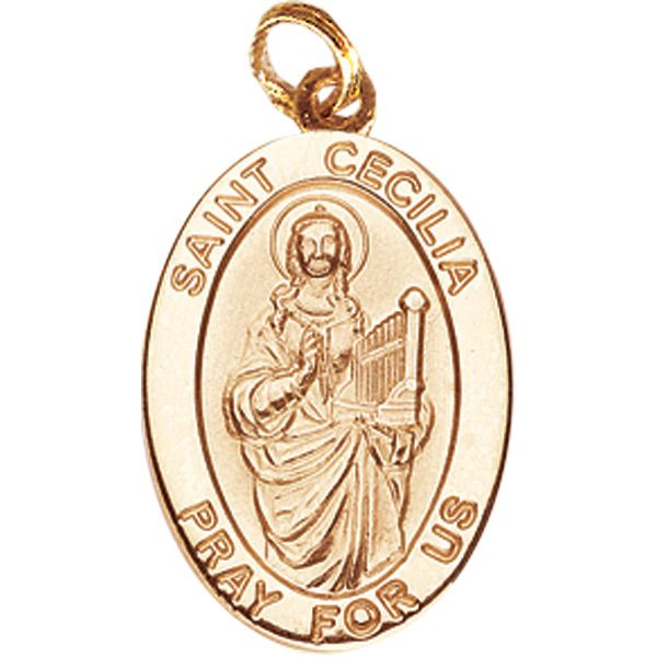 St. Cecilia is the patroness of the musical arts and was known for her holiness and purity, such that her soul sang a beautiful song to the Lord God. Reads, Saint Cecilia Pray For Us around the outside edge.
