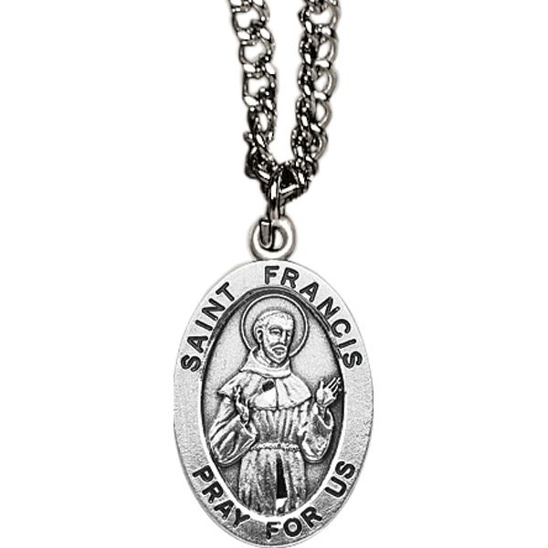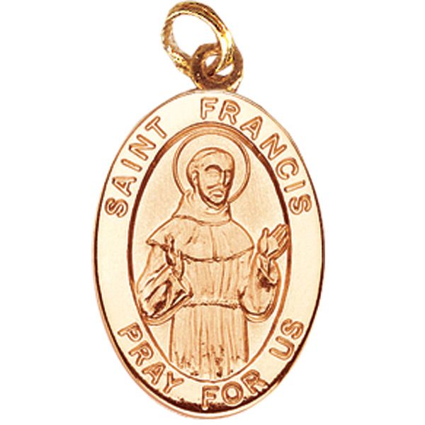 One of the most beloved of the Catholic saints, this holy man is patron to animals as well as Earth stewardship. A man of wealth, he chose to give it up and live in poverty, founding an order of brothers. Reads, Saint Francis Pray For Us around the outside edge.