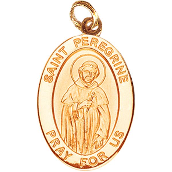 This man began his life in opposition to the Catholic religion, but upon meeting a Christian who offered him the other cheek to strike, he was overcome and converted! He spent his life as a devout priest. He is most known for getting cancer in his foot and leg, but when he prayed to God was cured! Earning him the title of patron saint of those suffering from cancer. Reads, Saint Peregrine Pray For Us around the outside edge.