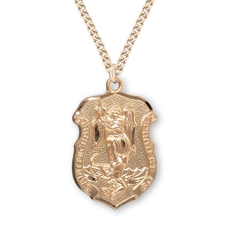 This handsome 16kt gold over sterling medal is available in two sizes, making it a great match for just about anyone. Those who serve on the police force could use an angelic helper at times, and who better than Heaven's own marshal of forces St. Michael the Archangel!