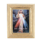 The beautiful Divine Mercy image, received by Sr. Maria Faustina Kowalska, in a small vintage-style gold frame.
