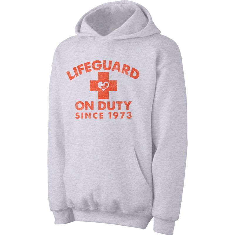 This unique sweatshirt has a pro-life message presented with a clever design. 1973 was the year the Supreme Court ruled on Roe vs Wade, legalizing abortion services in the United States. Since then, Christians have been working to defend the unborn. This shirt has the recognizable red cross with a heart an tiny fetus at the center and words, "Lifeguard On Duty since 1973"