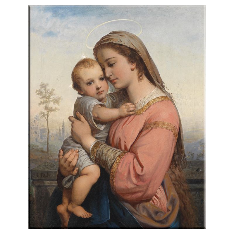 A gorgeous image of Our Lord and Lady by Austrian painter Russ. Realistic, soft expressions show the love of Jesus and Mary, as our Lord looks toward the viewer, His hand seeming to motion us to a greater love and reliance on Mary. Just as He chose to rely on her.