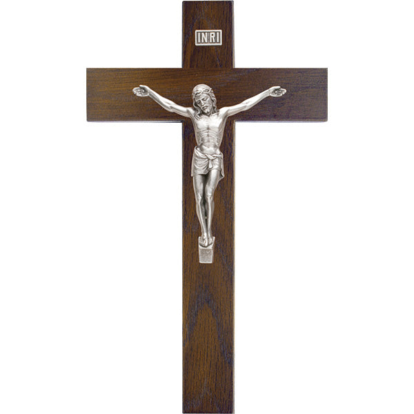 This beautiful line of Catholic crucifixes features the design-work of Salerni in the silver-tone corpus and your choice of rich Cherry or Walnut for the cross. Makes an elegant addition to any room.