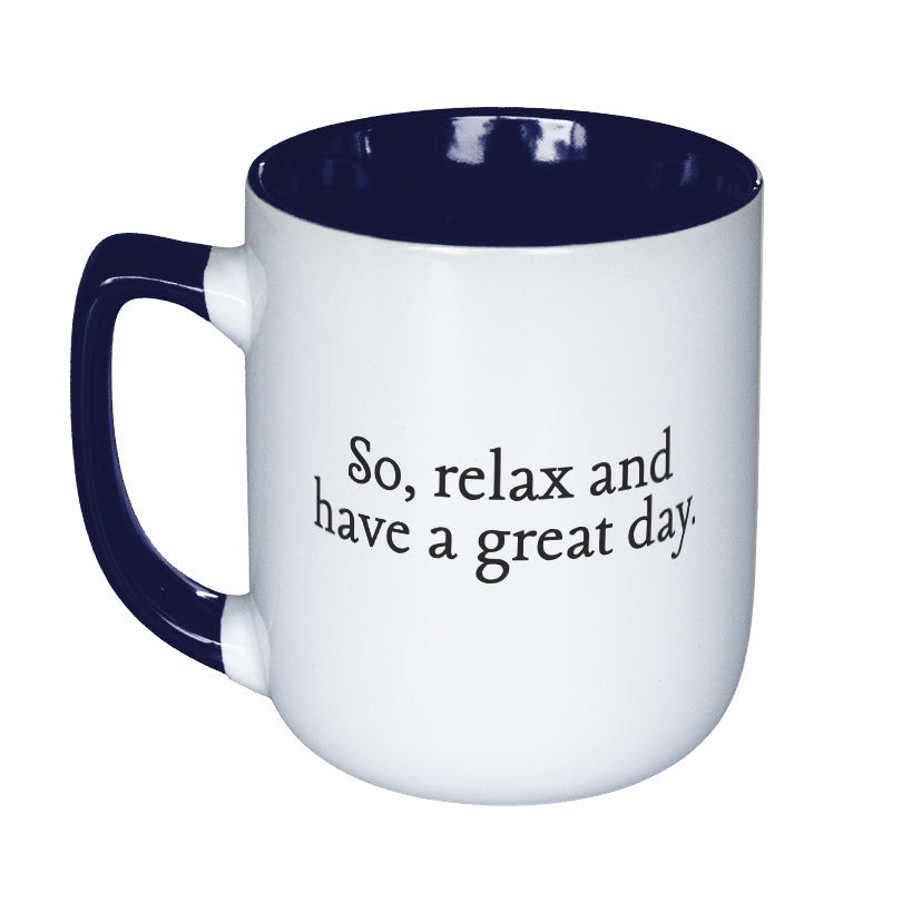 17oz, glazed ceramic mug. May be ordered plain or personalized (single name, 12 letters with no spaces. Cannot do accent marks.) For personalized mugs, hand wash only.