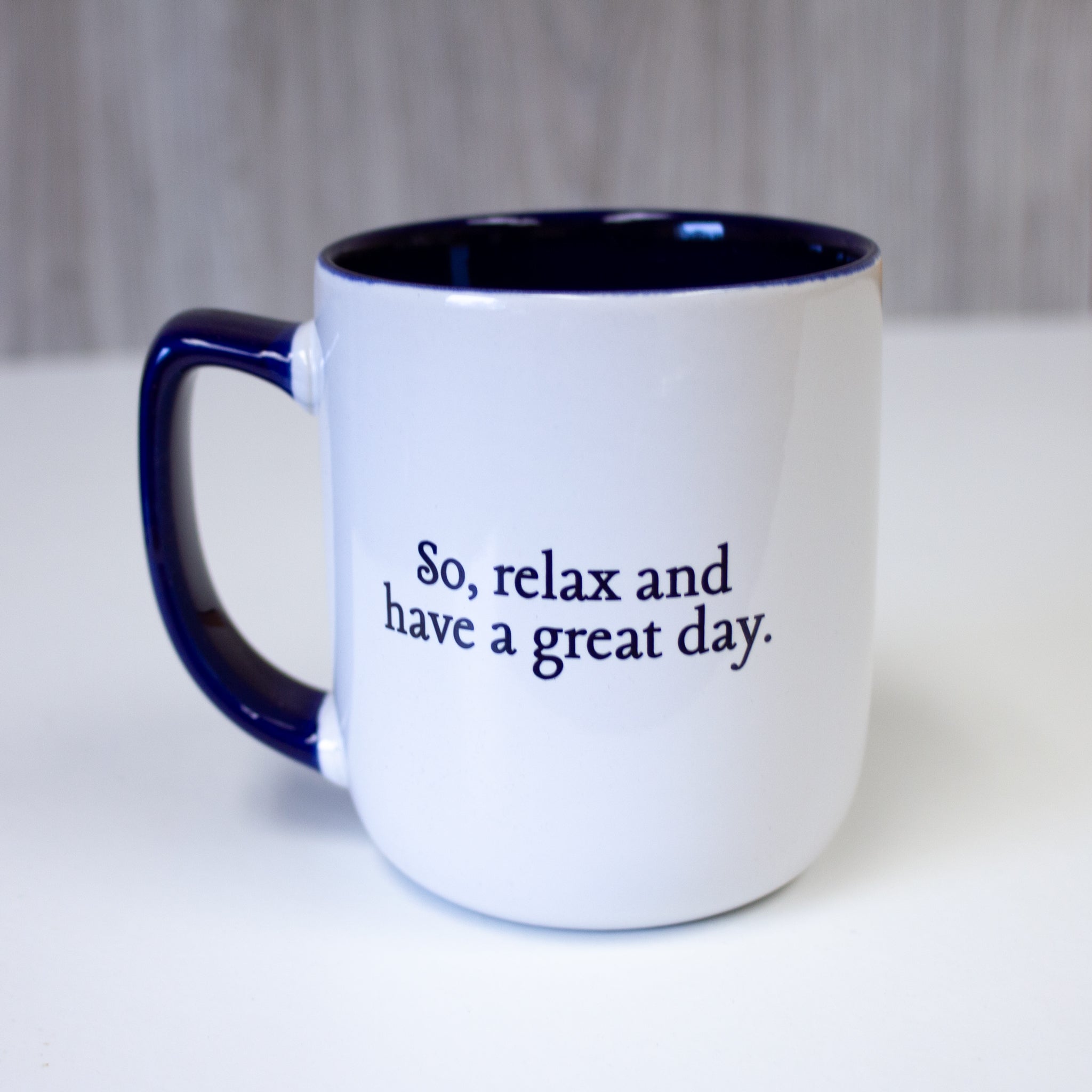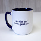17oz, glazed ceramic mug. May be ordered plain or personalized (single name, 12 letters with no spaces. Cannot do accent marks.) For personalized mugs, hand wash only.