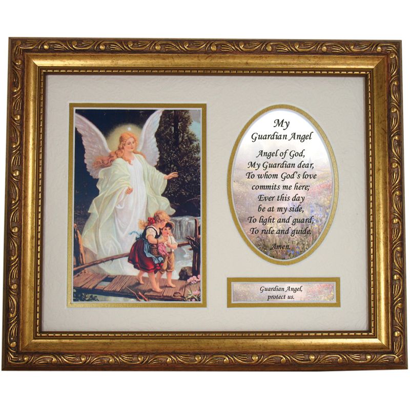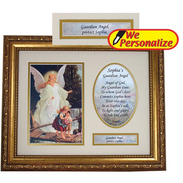 This gorgeous piece of Catholic wall art features the classic image of the Guardian Angel protecting two small children as they navigate across a bridge. Personalize it for that extra special touch.