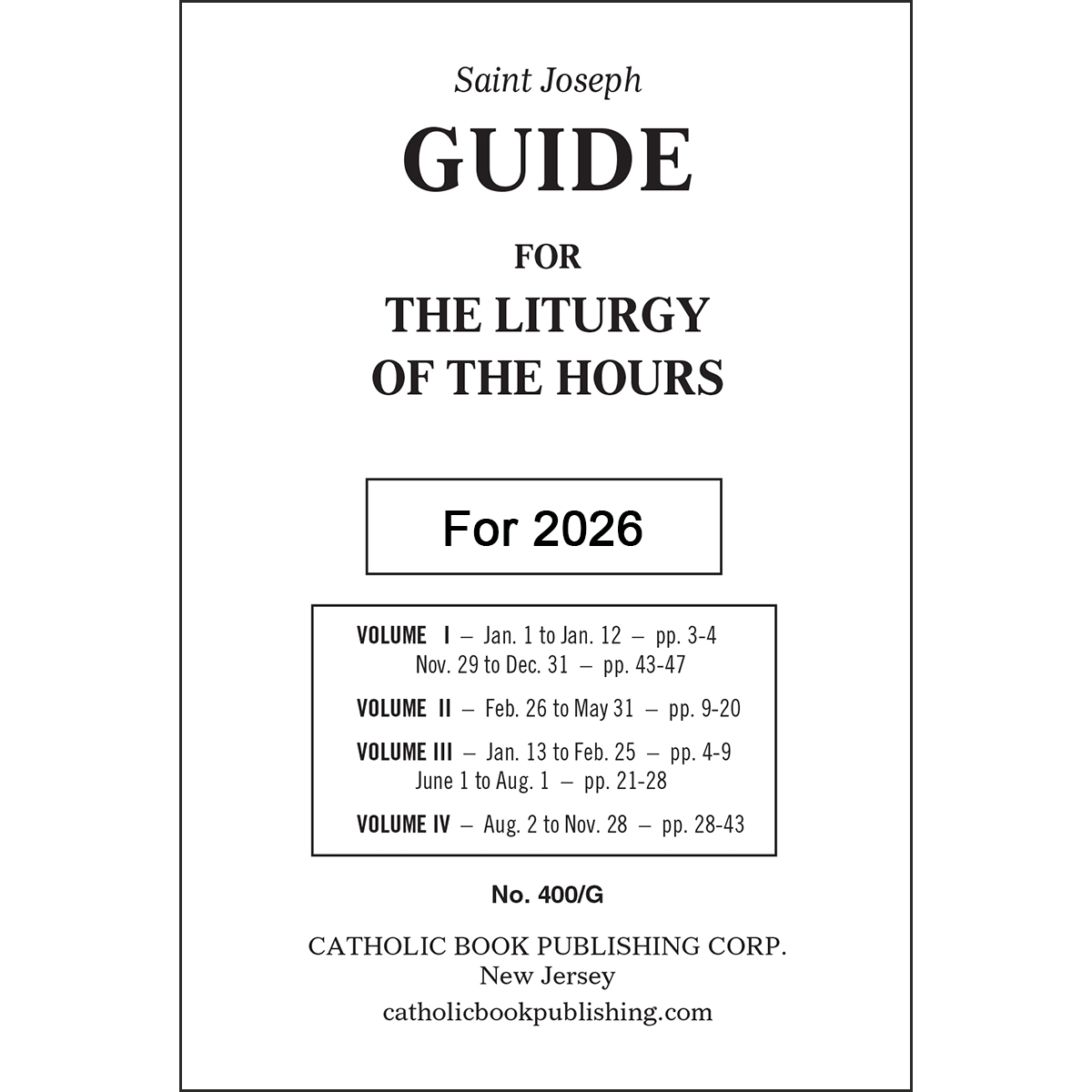 The Saint Joseph Guide for the Liturgy of the Hours was crafted for every individual striving to correctly recite the Divine Office for each day of the year. This very accessible and easy-to-use booklet contains the page numbers for you to easily find the day and readings in your breviary. It's a must-have book for individuals seriously following the Liturgy of the Hours.